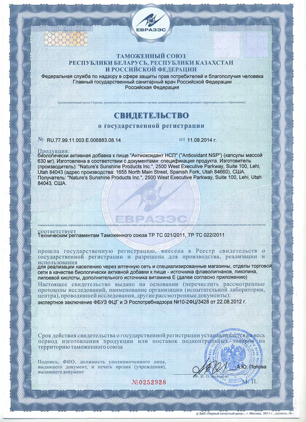 БАД к пище Антиоксидант НСП является источником флаволигнанов, ликопина, липоевой кислоты, дополнительным источником витамина Е.