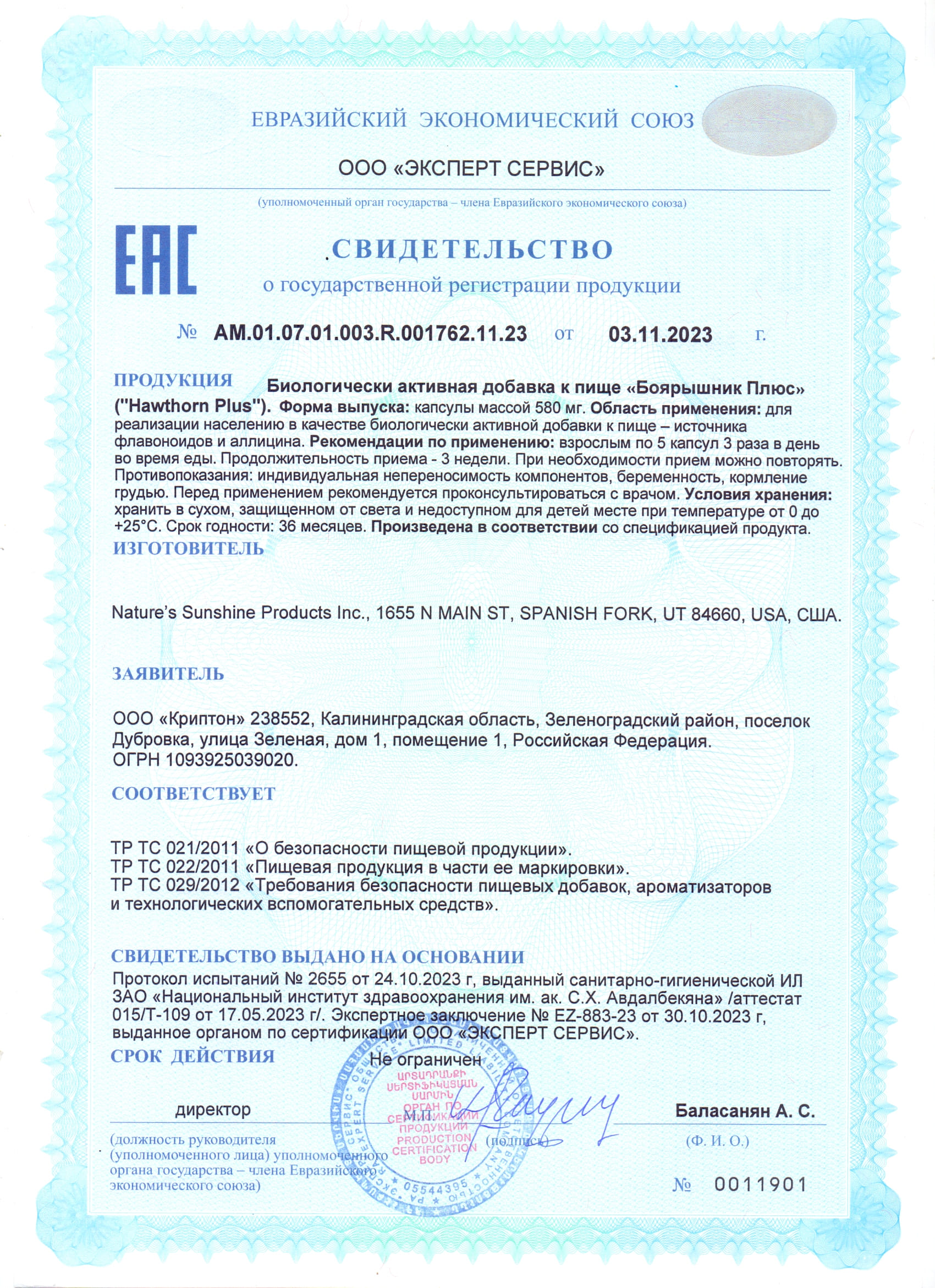 БАД к пище Боярышник Плюс является источником флавоноидов и аллицина.