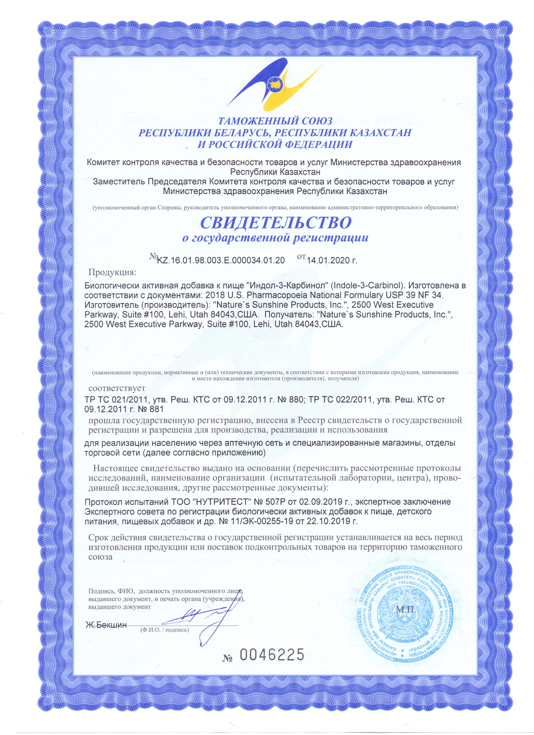 БАД к пище Индол-3-Карбинол является дополнительным источником индол-3-карбинола.