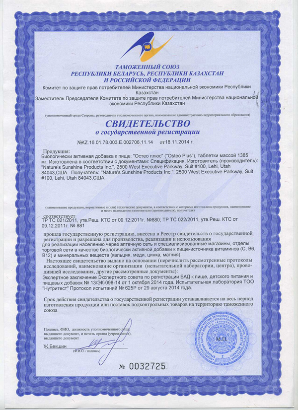 БАД к пище Остео Плюс является дополнительным источником витаминов (С, В6, В12) и минеральных веществ (кальция, меди, цинка, магния), содержит витамин D, бор, марганец, железо, фосфор.