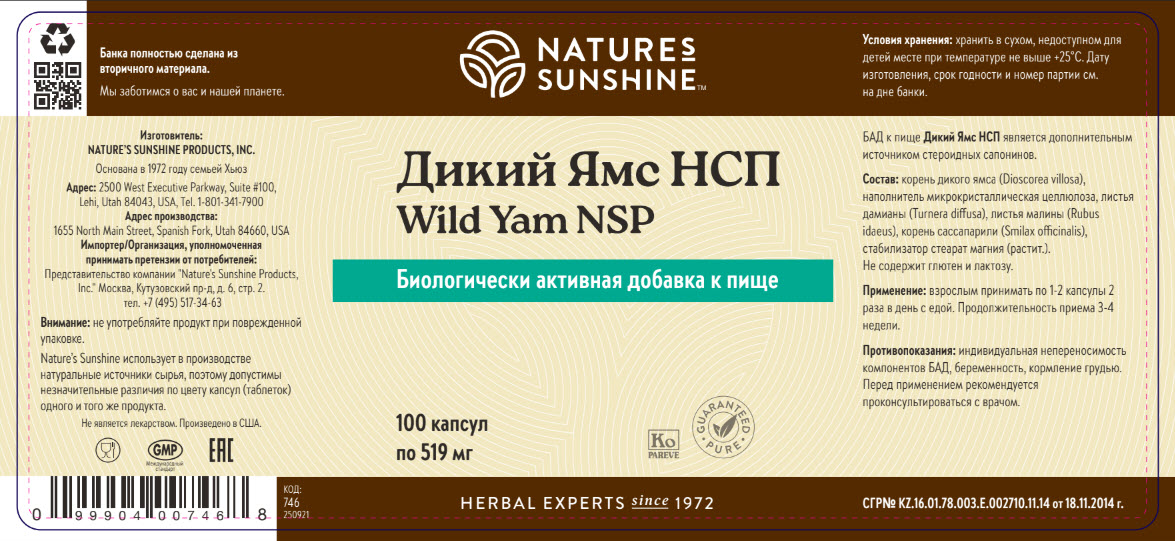 БАД к пище Дикий Ямс НСП является дополнительным источником стероидных сапонинов.